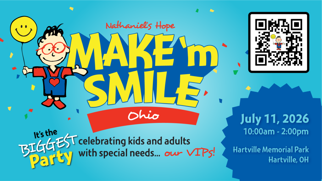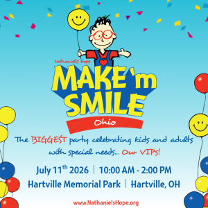 CAPTION: The biggest-known party celebrating VIP Kids of all ages with special needs and their families, is coming July 11, 2026! Join the fun and festivities featuring food, games, exhibits, a friendship stroll, live performances and more! Sponsors and volunteers are needed! INFO: https://nathanielshope.org/our-programs/make-m-smile/ohio/ or email:[email protected].