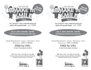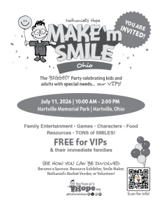 CAPTION: The biggest-known party celebrating VIP Kids of all ages with special needs and their families, is coming July 11, 2026! Join the fun and festivities featuring food, games, exhibits, a friendship stroll, live performances and more! Sponsors and volunteers are needed! INFO: https://nathanielshope.org/our-programs/make-m-smile/ohio/ or email:[email protected].
