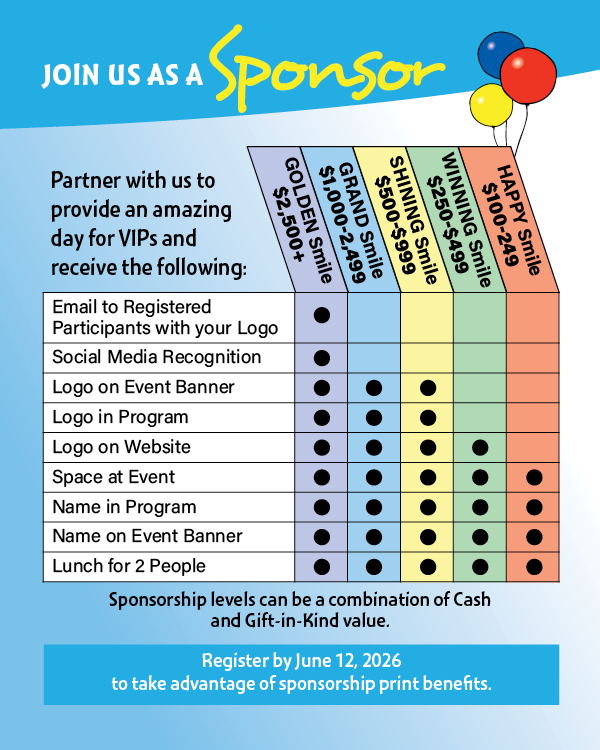 Sponsors receive recognition and promotional opportunities, showcasing their commitment to the special needs community. Our event can’t happen without our faithful partners!
